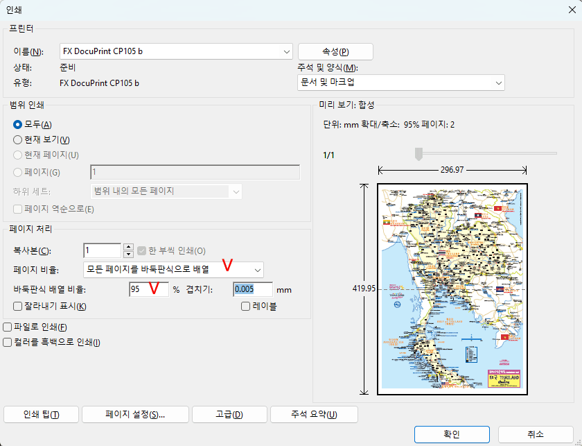 본인의 프린터 상황에 맞게 배율을 조정하시면 됩니다.