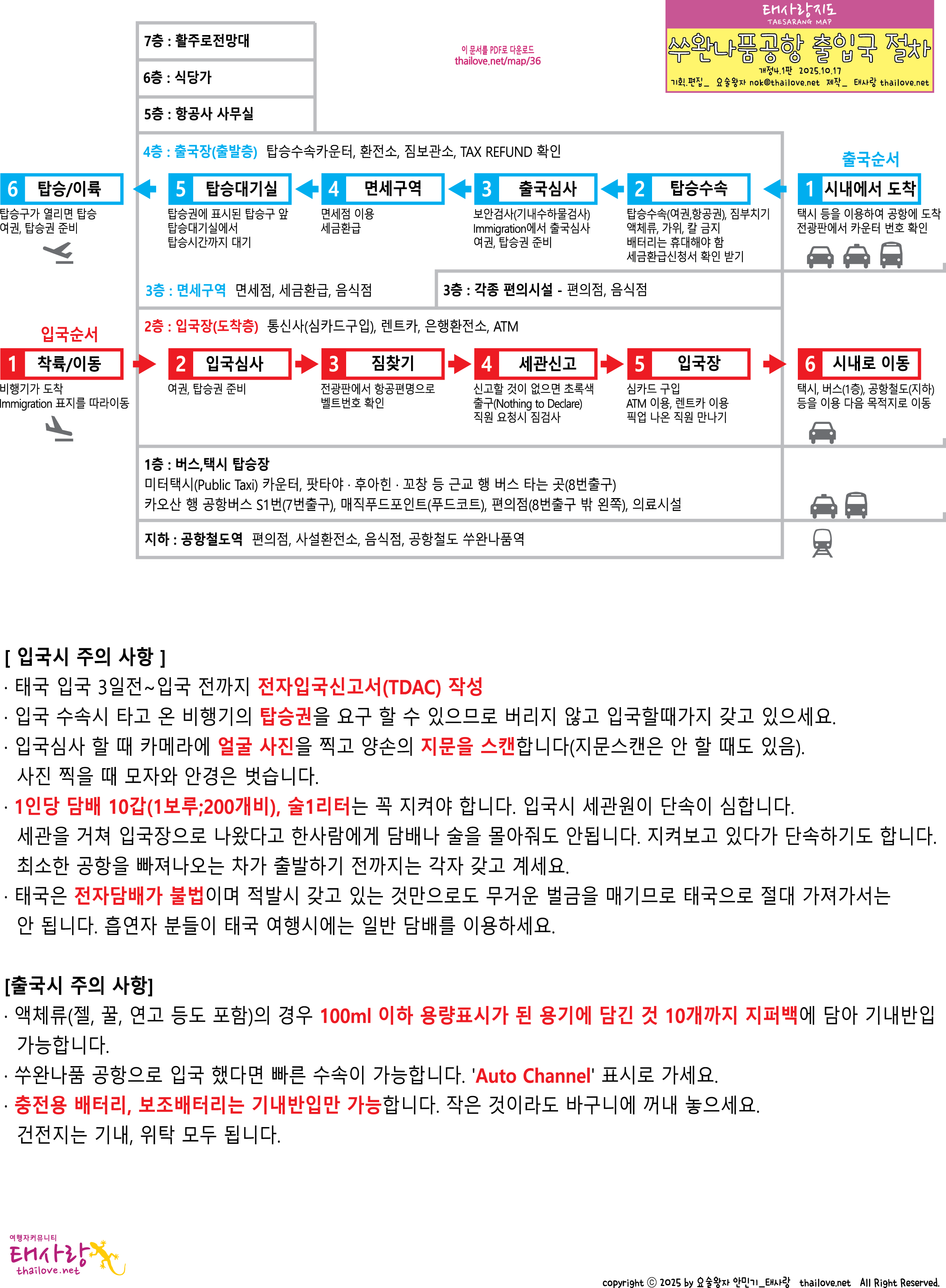 출입국 절차와 주의사항 / 쑤완나품공항 출입국 절차(흐름도)
